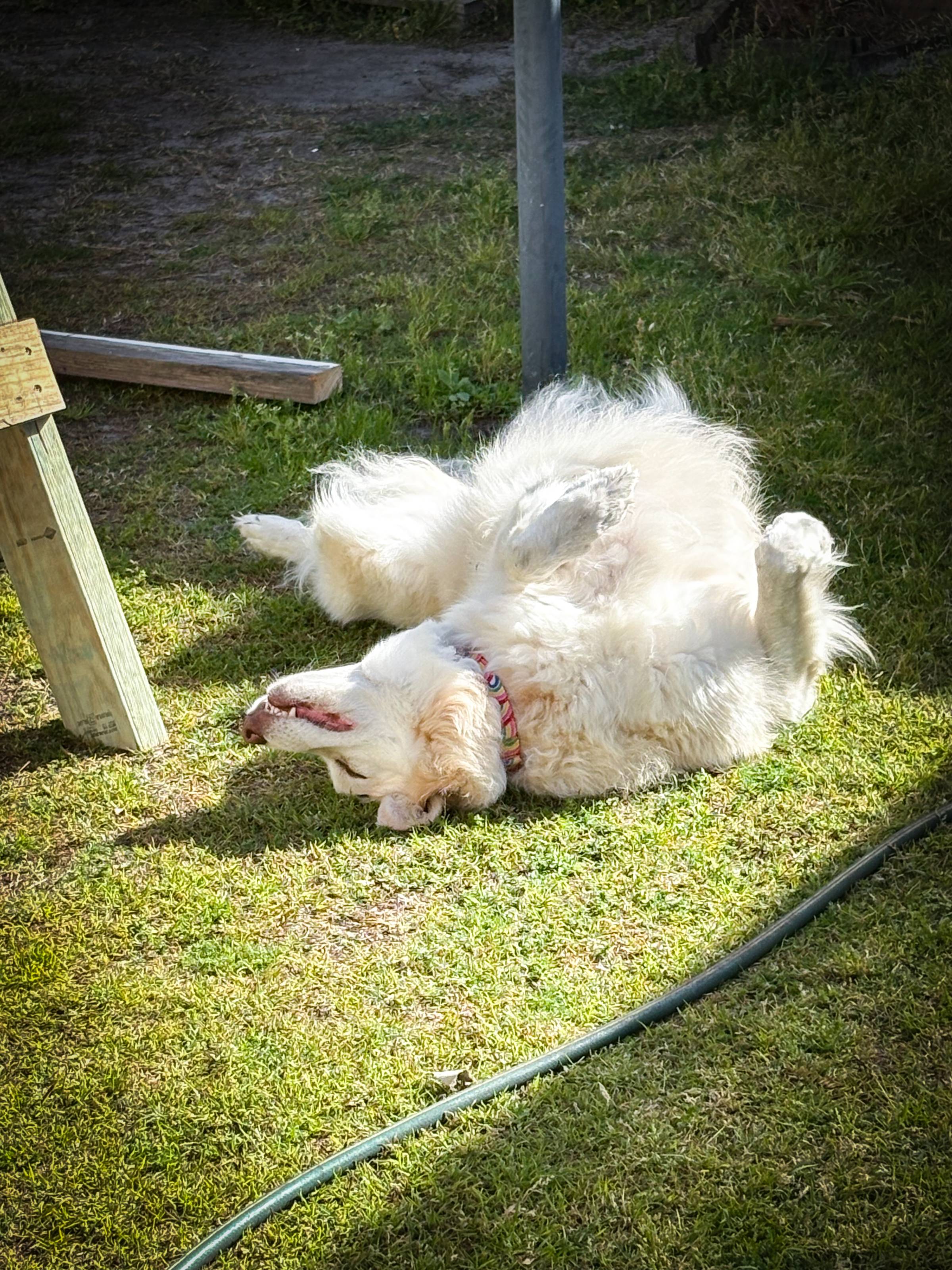 At one point in the project, I cracked it. I was hot. I was over it. There was an uncomfortable amount of dirt in my eyes. And it had stopped being fun. I crawled out from under the house for a break, and there was Asterix lying belly up on the grass, sleeping under the sun, fur moving gently in the breeze, making this particular Saturday look like the best, most relaxing Saturday ever.