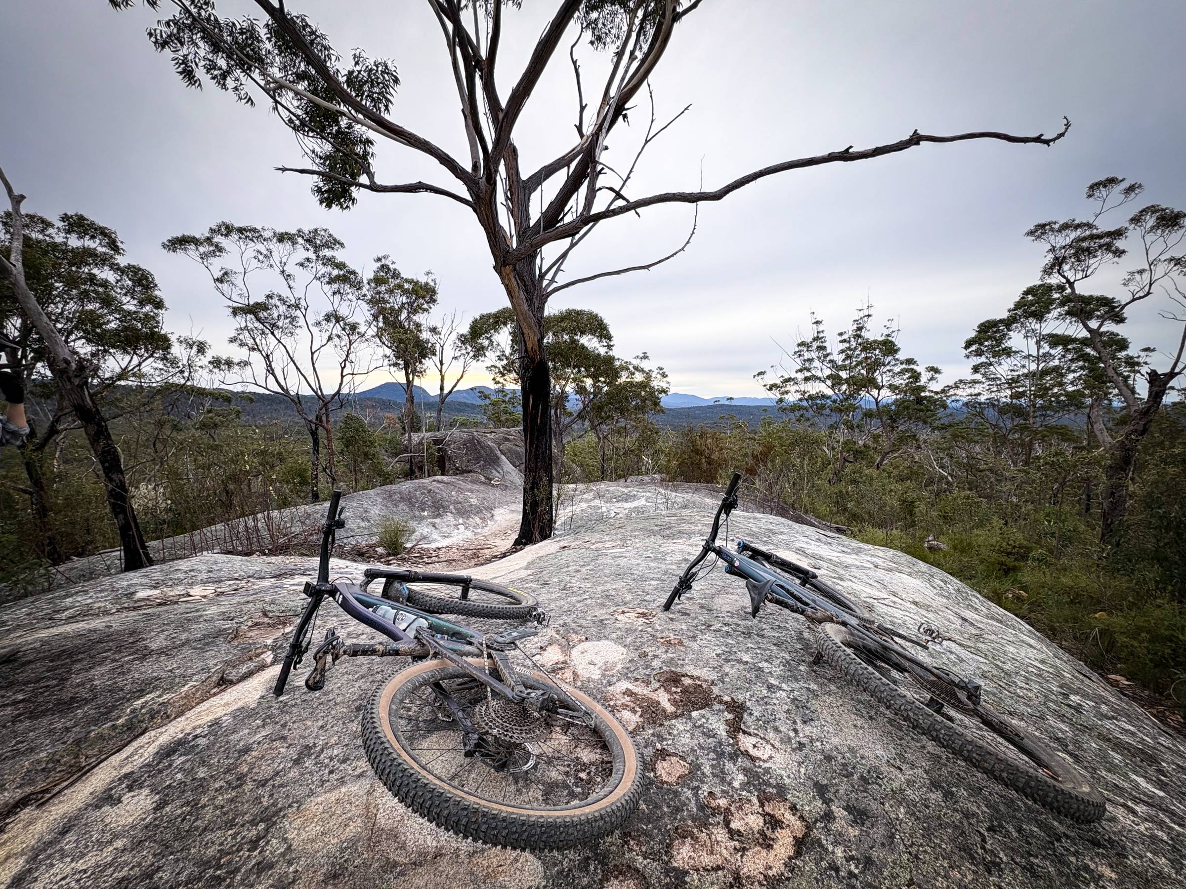 Stopping and soaking up the moment can be one of many highlights of a great bike ride as well. Photo: Kath Bicknell on Mogo's Burnaaga (Goanna) trail.